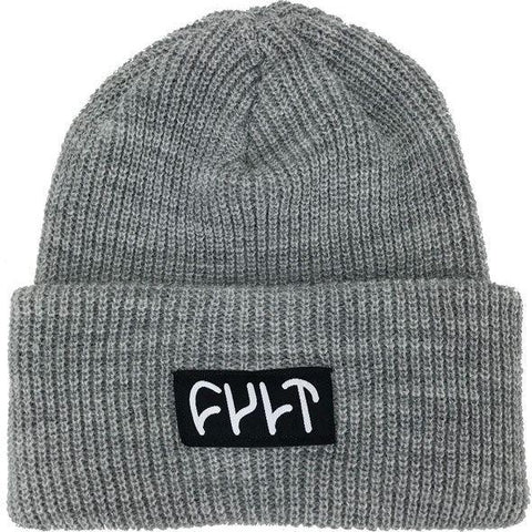 Updated ribbed beanie from Cult featuring the Cult logo on a patch on the front. 100% Hypoallergenic Acrylic.