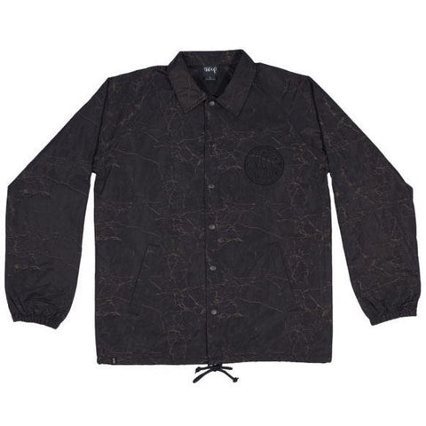 Black Psych Logo Trip jacket, printed on a cracked, Nylon material blended with a canvas, 3d material that sticks out of the jacket creating a very unique look and feel. Jacket is dual layer and includes an adjustable waist band, woven loop label and woven care tag.