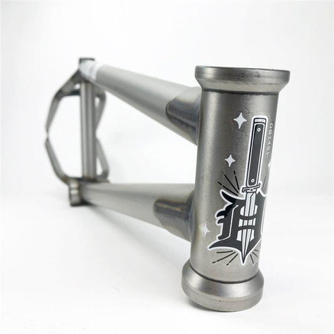 Chase Dehart signature Cult Butter BMX frame. Straight forward frame without all the bells and whistles to keep the price low without sacrificing strength. The Dehart frame is made from revised 100% butter blended tubing for increased strength and features top and down tube gussets, externally machined mid BB shell, s-bend chainstays wth room for 2.40 tyres and 5mm dropouts.