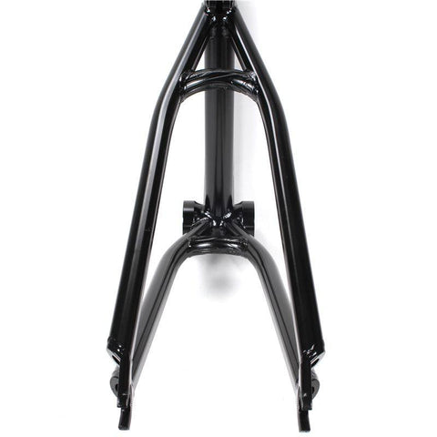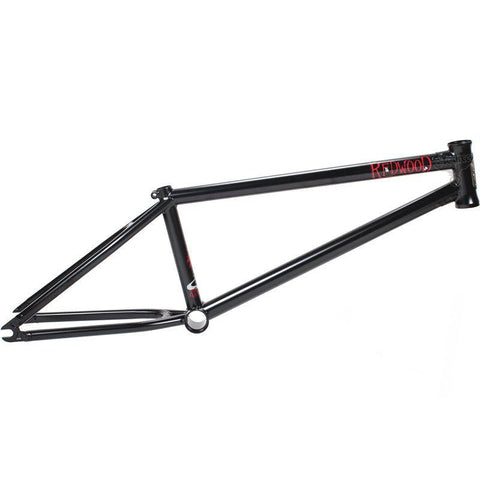Kink pro team rider Connor Lodes’ signature Redwood frame is all about the details. From the geometry, design features, colorways, right down to the graphics, you’ll find unique features that all evolved from Connor’s direct input. The modern geometry, quality materials and the latest manufacturing techniques mean this frame feels great and will hold up to whatever beating you send it’s way. The dual toptube and downtube gussets add additional strength where you need it, and give the frame a classic look with the custom shaped gusset plates. A newly refined headtube design features additional internal machining to remove extra material, a sleek external profile and a custom Redwood headtube badge. Custom faux wood-grain investment cast bridges look really slick, connecting the “D” shape seatstay and chainstay tubes which add tire clearance and increase stiffness. Moving on to the dropouts you’ll see the integrated chain tensioners found on all Kink frames, with the addition of cast serrations to prevent any possible axle movement.