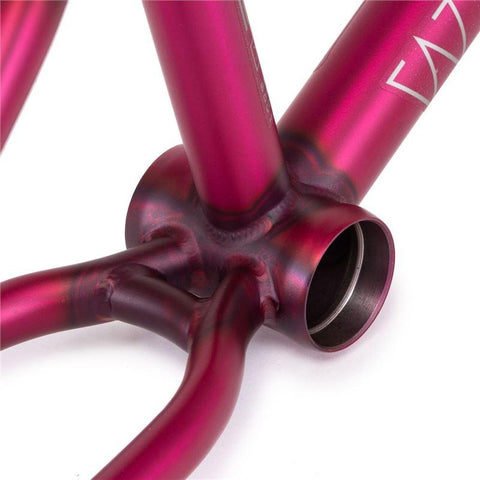 Dan Kruk's Battleship colourway. Wethepeople designed the Battleship frame to be a stripped down weapon without any unnecessary features, so the frame will come fully brakeless to help keep the cost down, which will allowed them to put more focus into more vital parts like the dropouts and headtube which have been severely beefed up. The team asked for a shorter chainstay than any other frame they currently offer, so the Battleship will come with a slammed 12.7' chainstay for those of you who like a frame that spins as good as it looks.