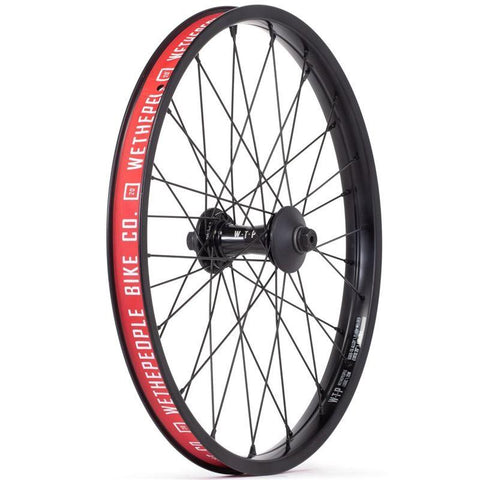 Pre Built 36h Wheel from Wethepeople. Logic Welded rim includes the new helix front hub and nylon hubguards WeThePeople Helix front hub is straight their street series and features a 6061-T6 Alloy refined hub-shell, a 4130 CrMo female axle and 2 high quality sealed bearings.